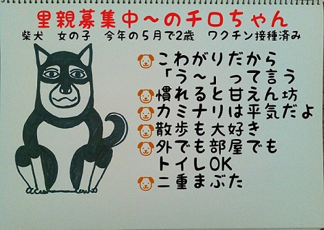 一時預りさんがプロフィールを書いてくださいました(^▽^)/チロちゃんは、完全室内飼いです。